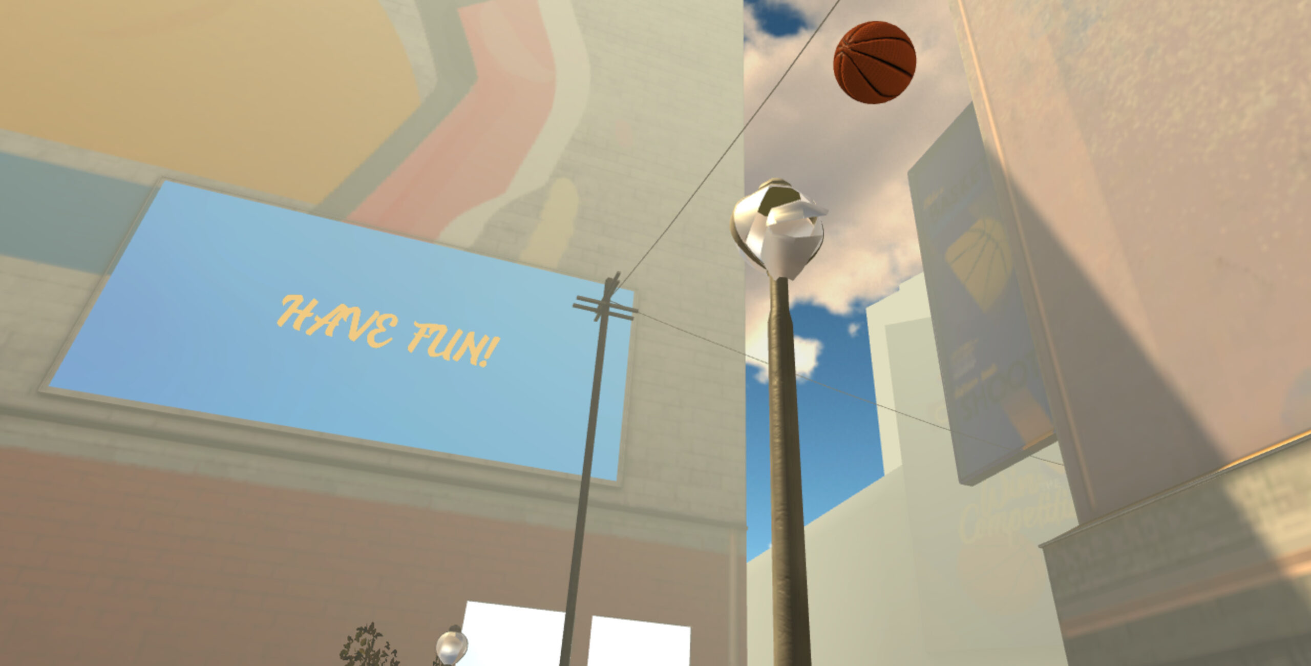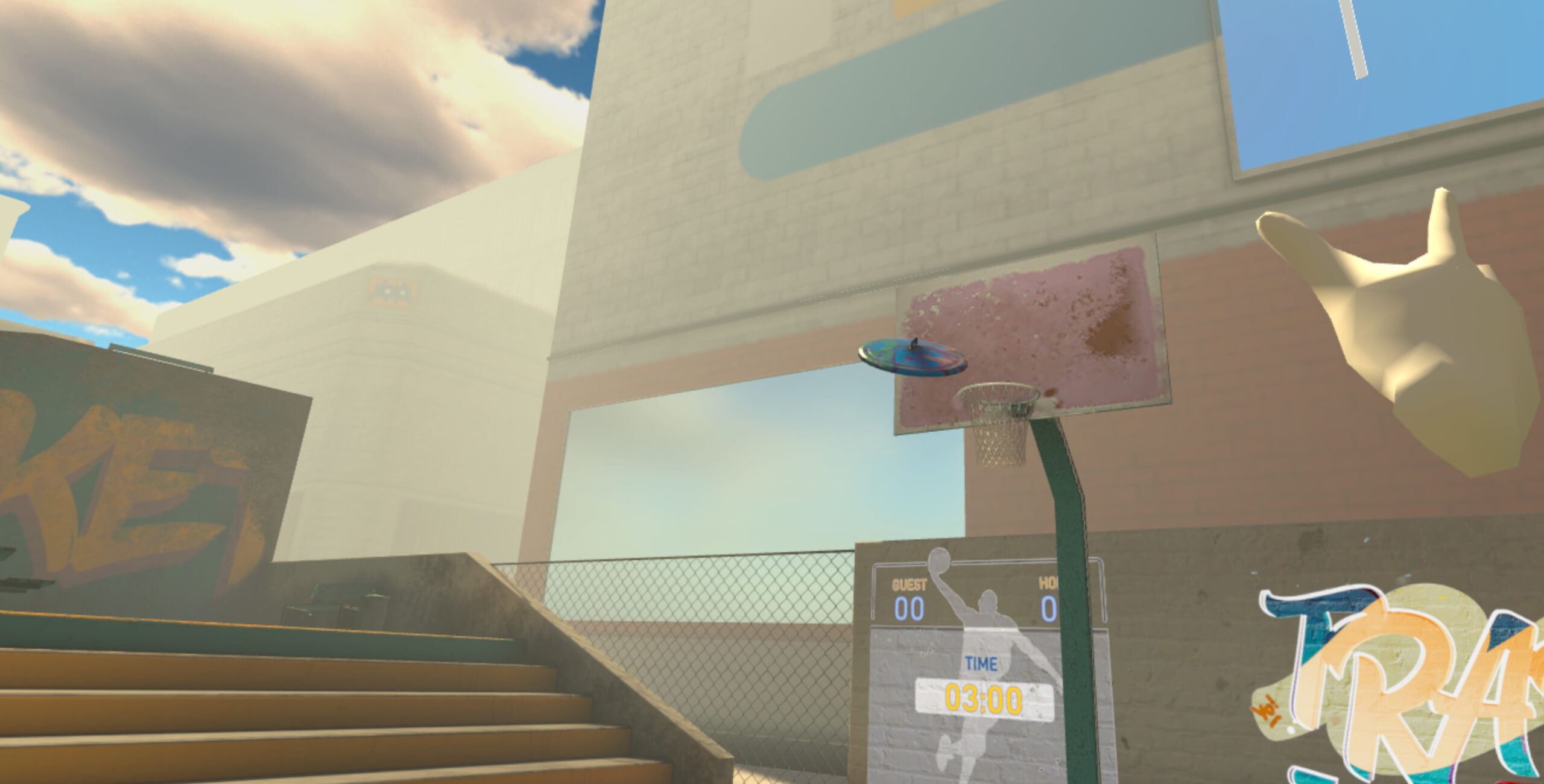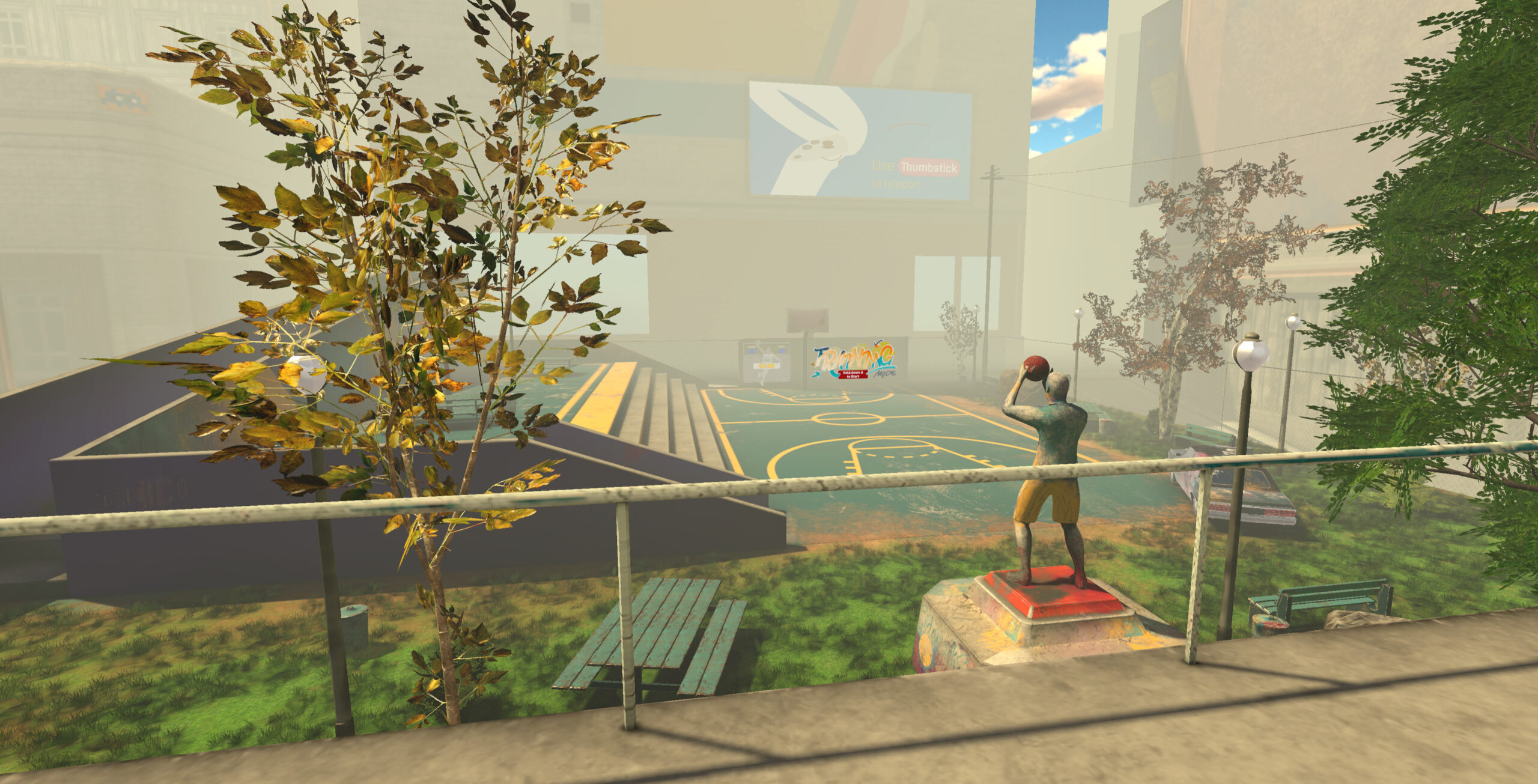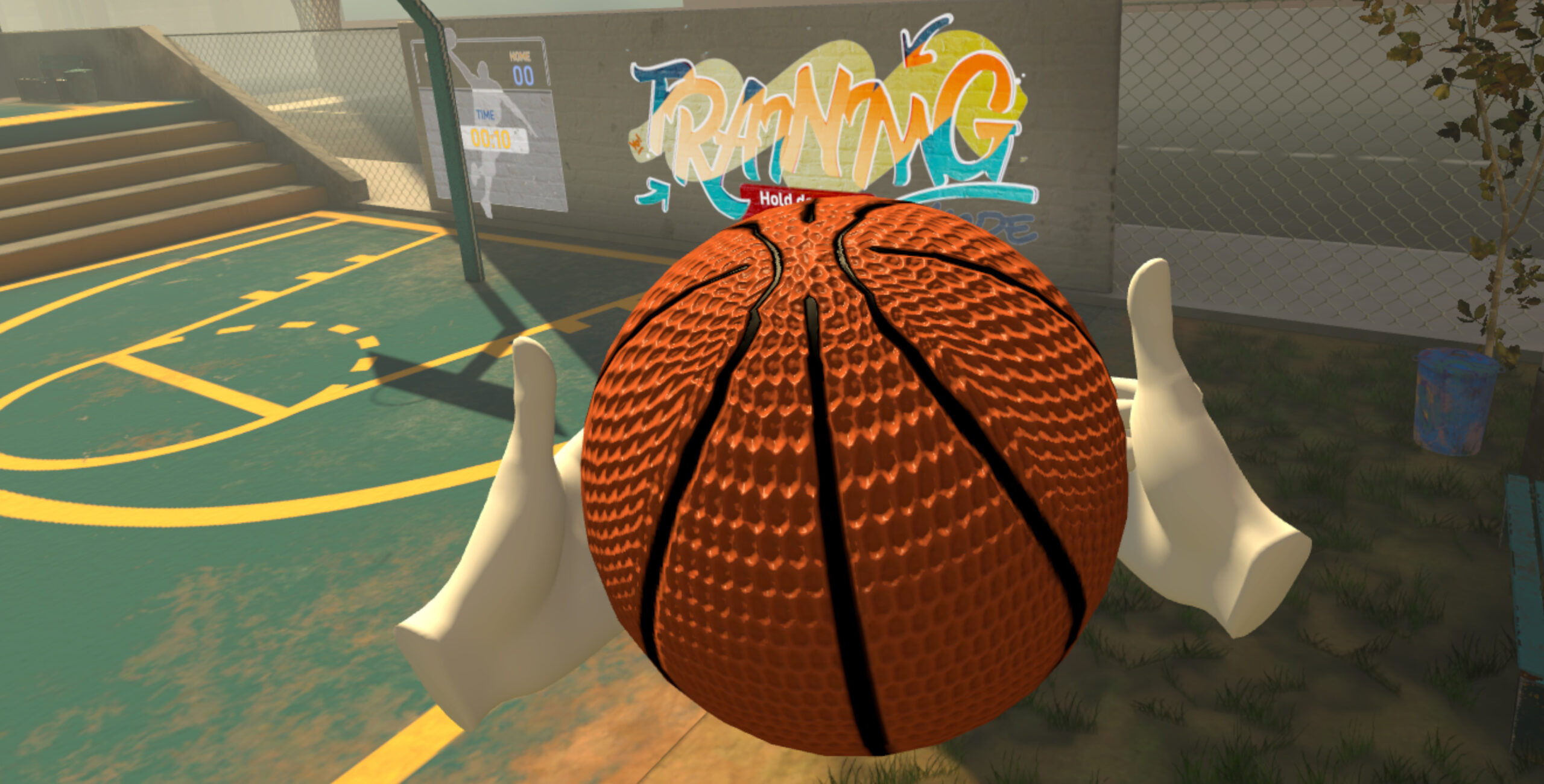 In Urban Basketball VR ti troverai in un campo da basket urbano, ricco di elementi interattivi.