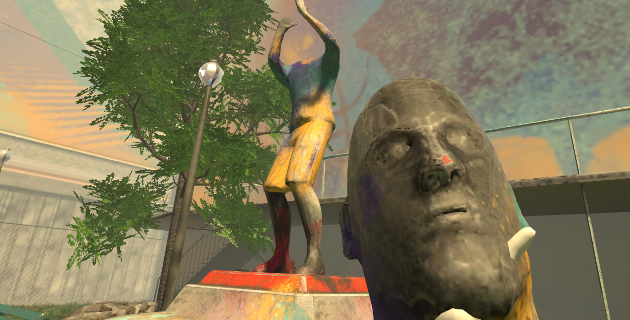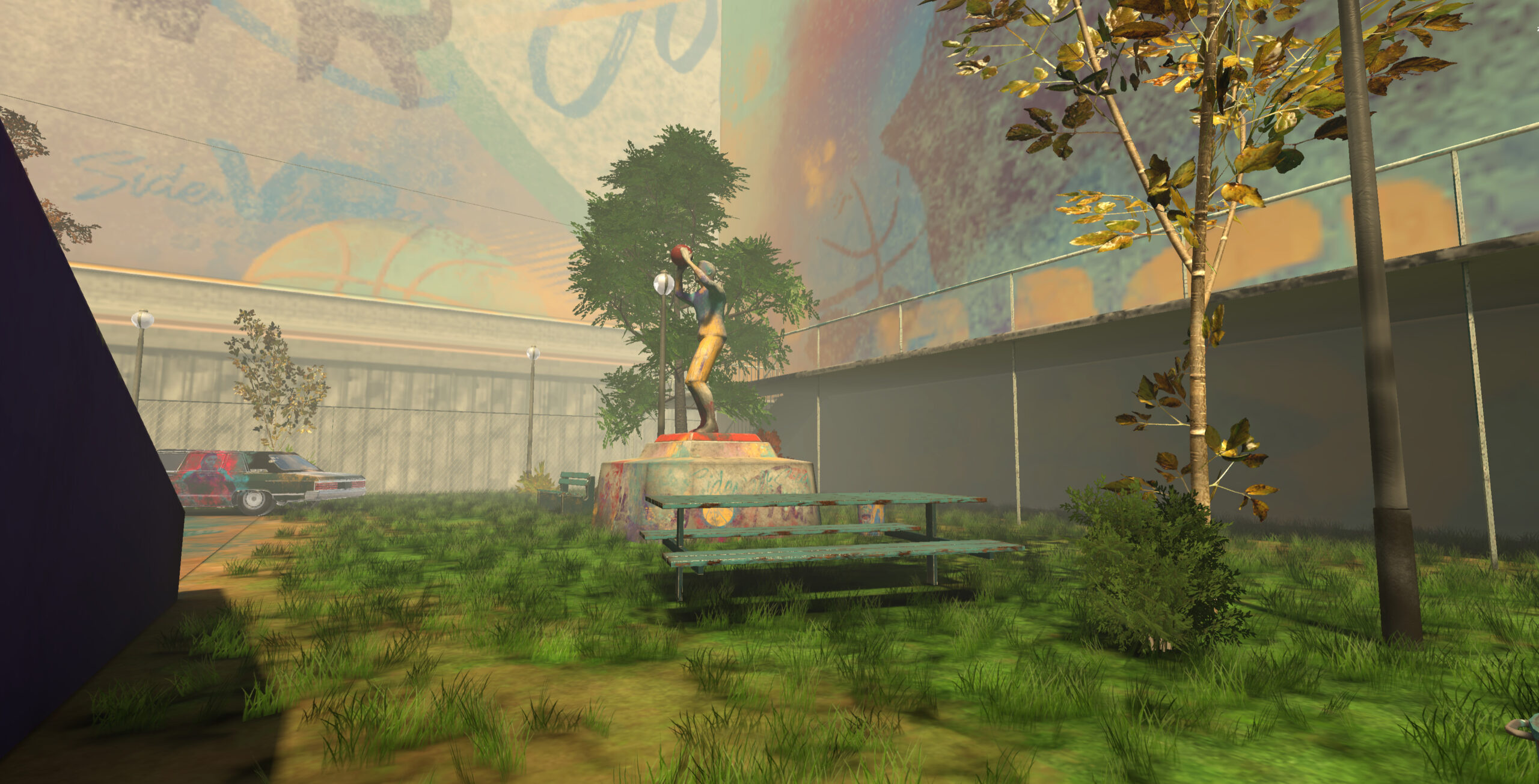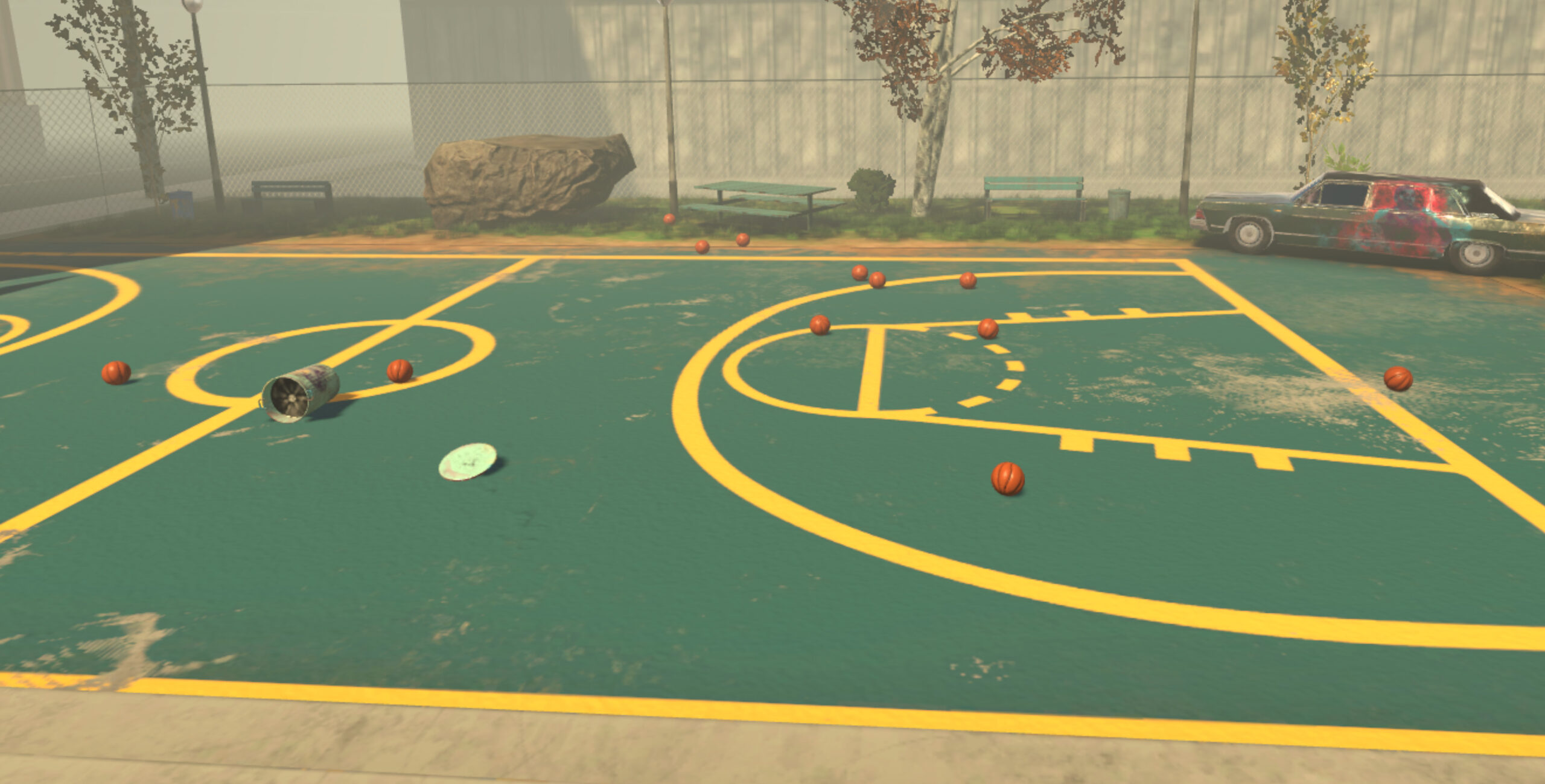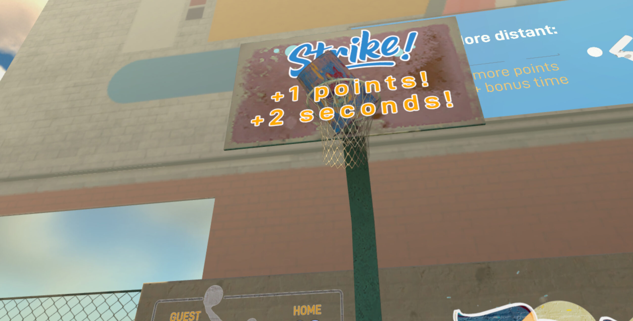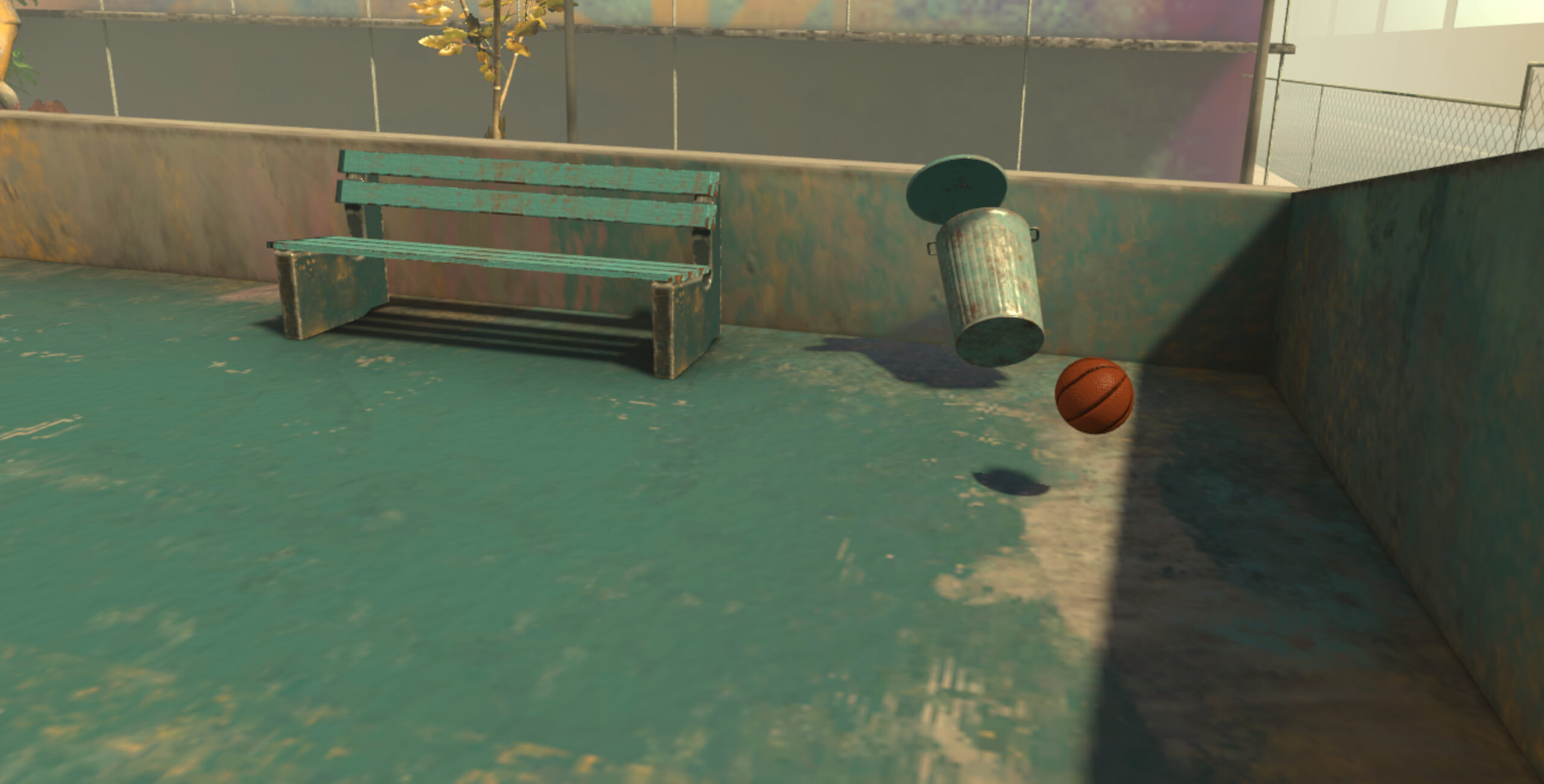 In Urban Basketball VR ti troverai in un campo da basket urbano, ricco di elementi interattivi.